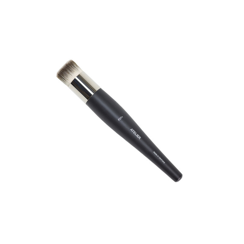 Pinceau rond à poils courts et denses utilisé pour l'application des fonds de teint liquide, sa densité permet d'obtenir un rendu homogène ainsi qu'une couvrance optimale. Sa forme arrondie s'adapte particulièrement aux contours du visage pour mieux les épouser et les maquiller.